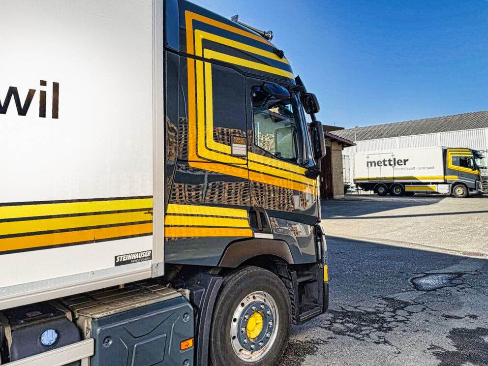 Nach rund 30 Jahren wurde das Geschäft von den Söhnen Hanspeter und Christian Mettler weitergeführt. Im laufe der Jahre konnte der Fahrzeugpark dank wachsender Kundschaft ausgebaut werden. Im Januar 1997 übernahmen wir in Amriswil ein bestehendes Transportunternehmen. Somit verlagerten wir unsere Fahrzeugflotte nach Amriswil in das Gewerbe-und Industriegebiet Schrofen, womit einem weiteren Wachstum unserer Firma nichts mehr im Wege stehen konnte. Die Büroräumlichkeiten behielten wir aber an unserem Wohnsitz in Bischofszell. Damit wir nebst Transporte auch Lager und Umschlag anbieten können, entschieden wir uns im Jahre 2009 eine Lagerhalle angrenzend an der bestehenden Garage zu errichten. Dank unserer geschätzten Kundschaft können wir auf eine über sechzigjährige Firmengeschichte zurückblicken.