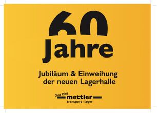 Am Samstag, 23. August feiern wir 60 Jahre Mettler-Transport und die Einweihung der neuen Lagerhalle. Wir laden Sie herzlich zu unserem Open Day ab 11:00 Uhr ein.  Für Getränke und Verpflegung ist gesorgt.